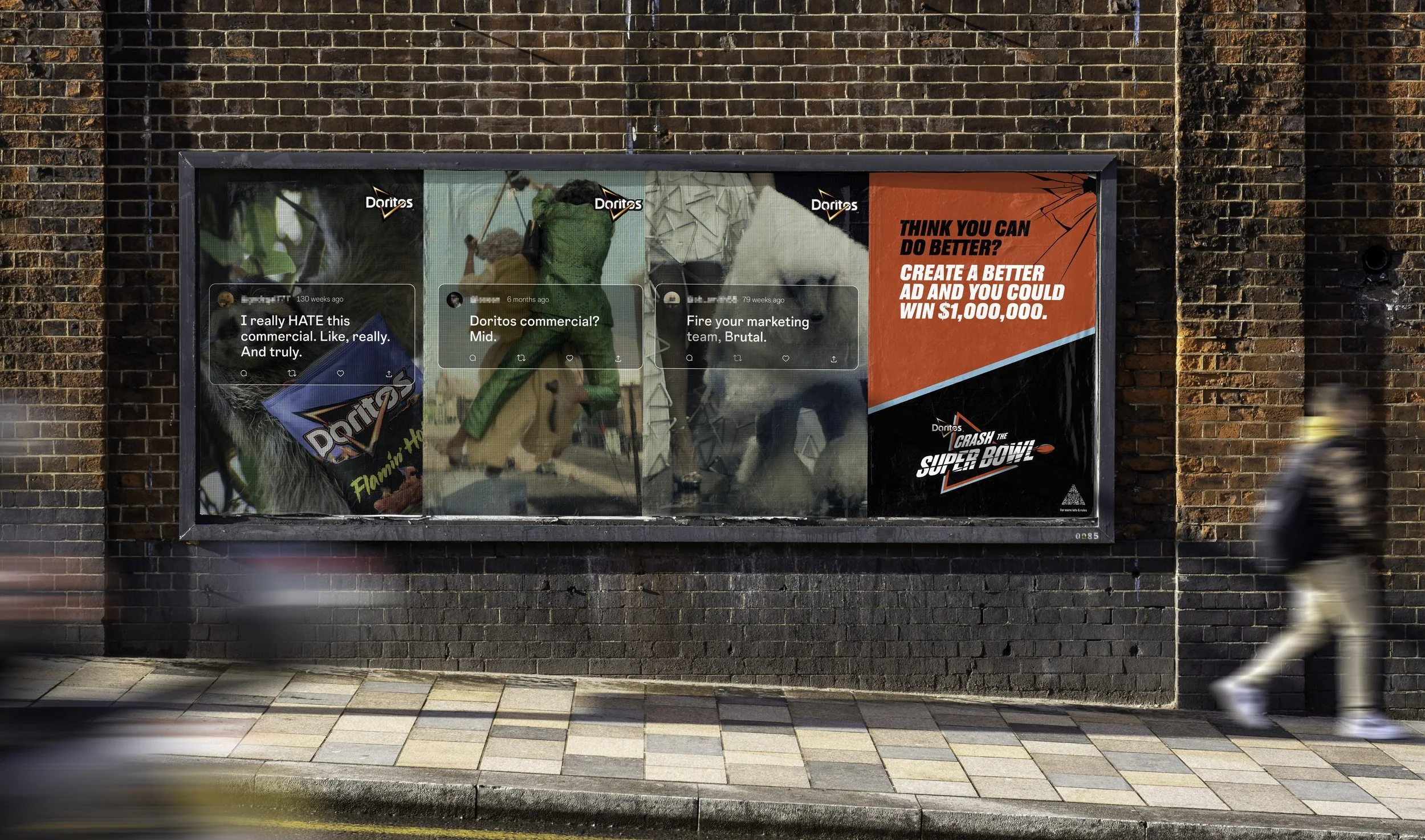 To re-launch Doritos Crash The Super Bowl, we went after every single person who has ever posted a negative comment about our Super Bowl ads, and challenged them to create a better one. Petty? You bet.